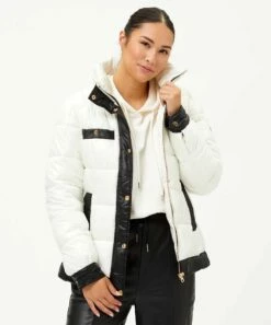 New π Jessica Simpson Off-White & Black Quilted Mock Neck Puffer π§₯ Coat – π© Women π