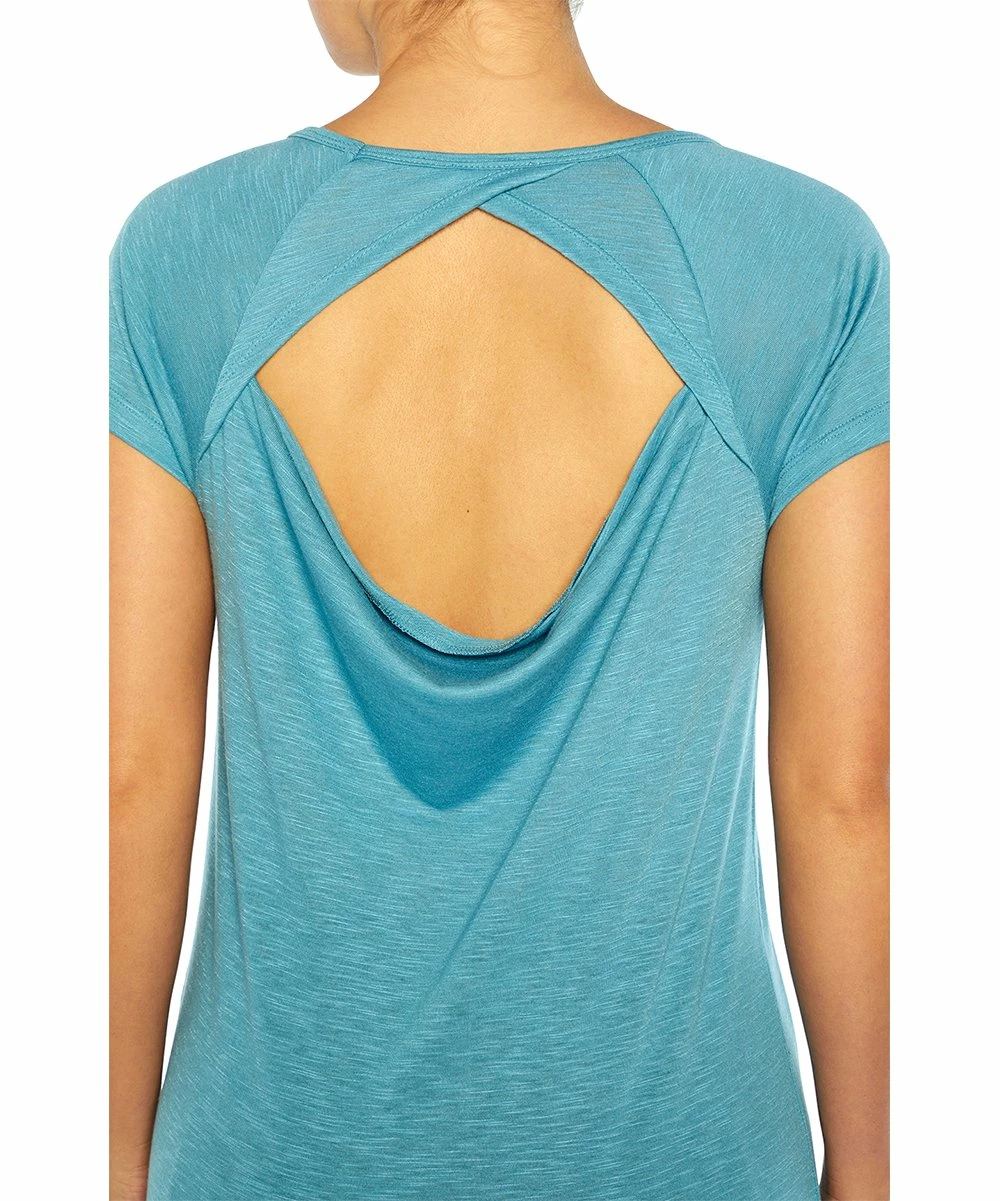 Minimal tee with a scoop neck and keyhole back.