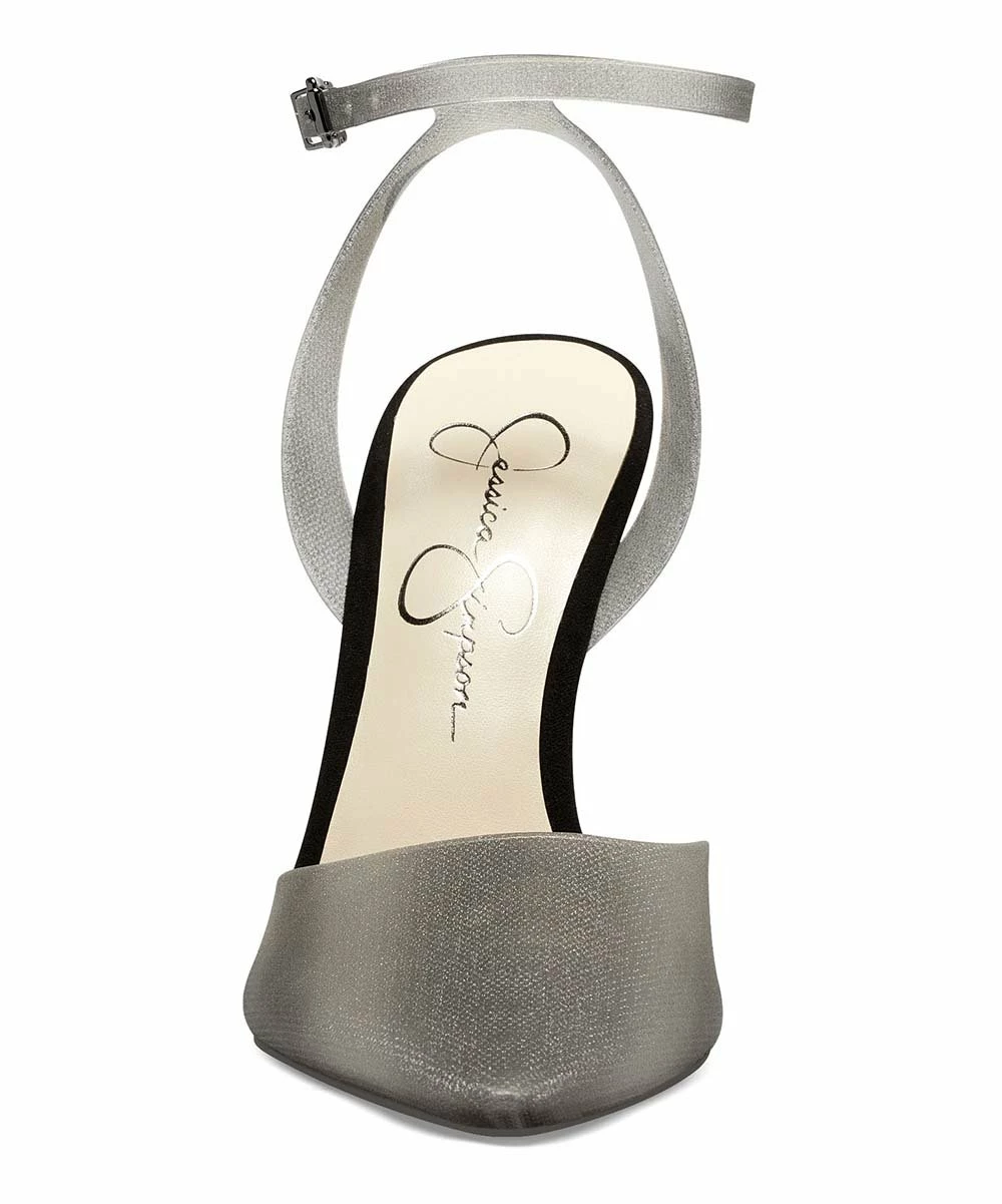 Slender pump featuring a secure buckle closure and a versatile hue.