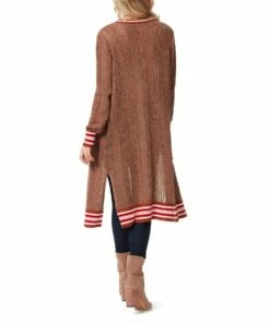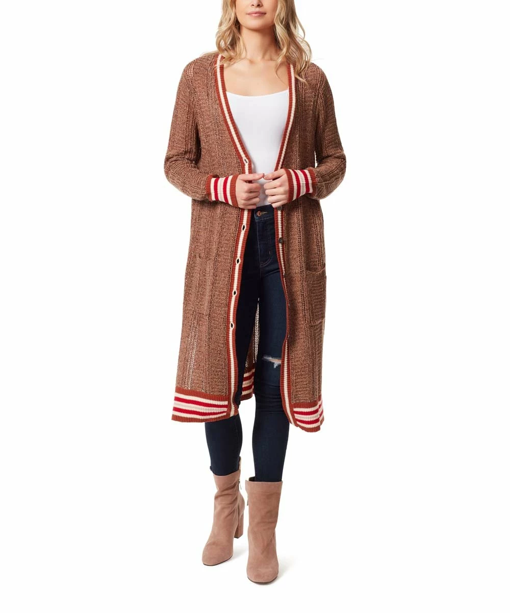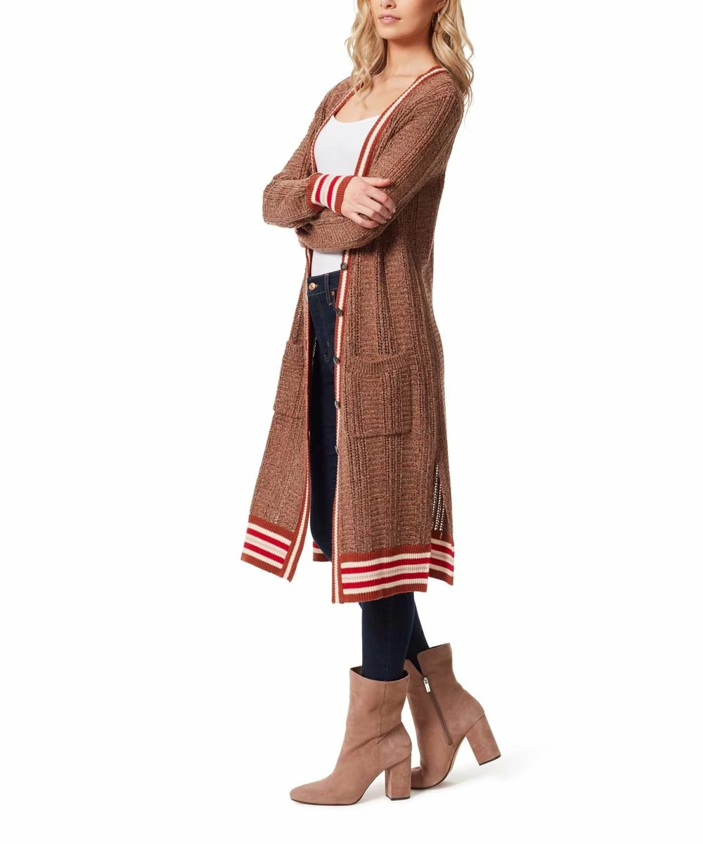 Layer your look with this longline cardigan designed with ribbed fabric and stripe accents.