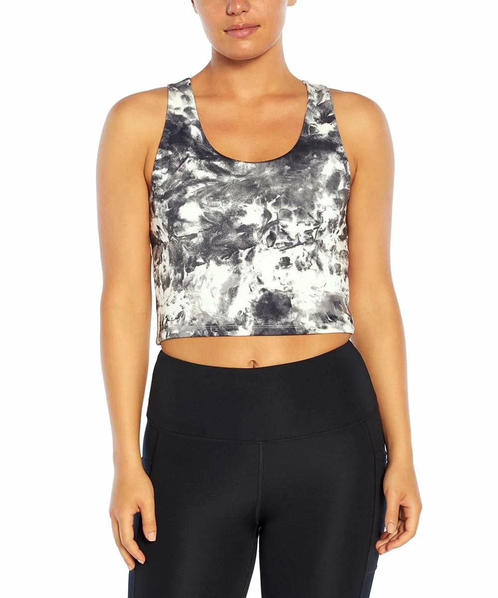 Conquer your workout in this tank crafted from stretchy fiber that boasts thin shoulder straps to help keep you cool on sunny days.