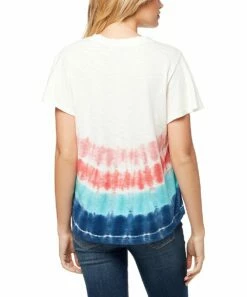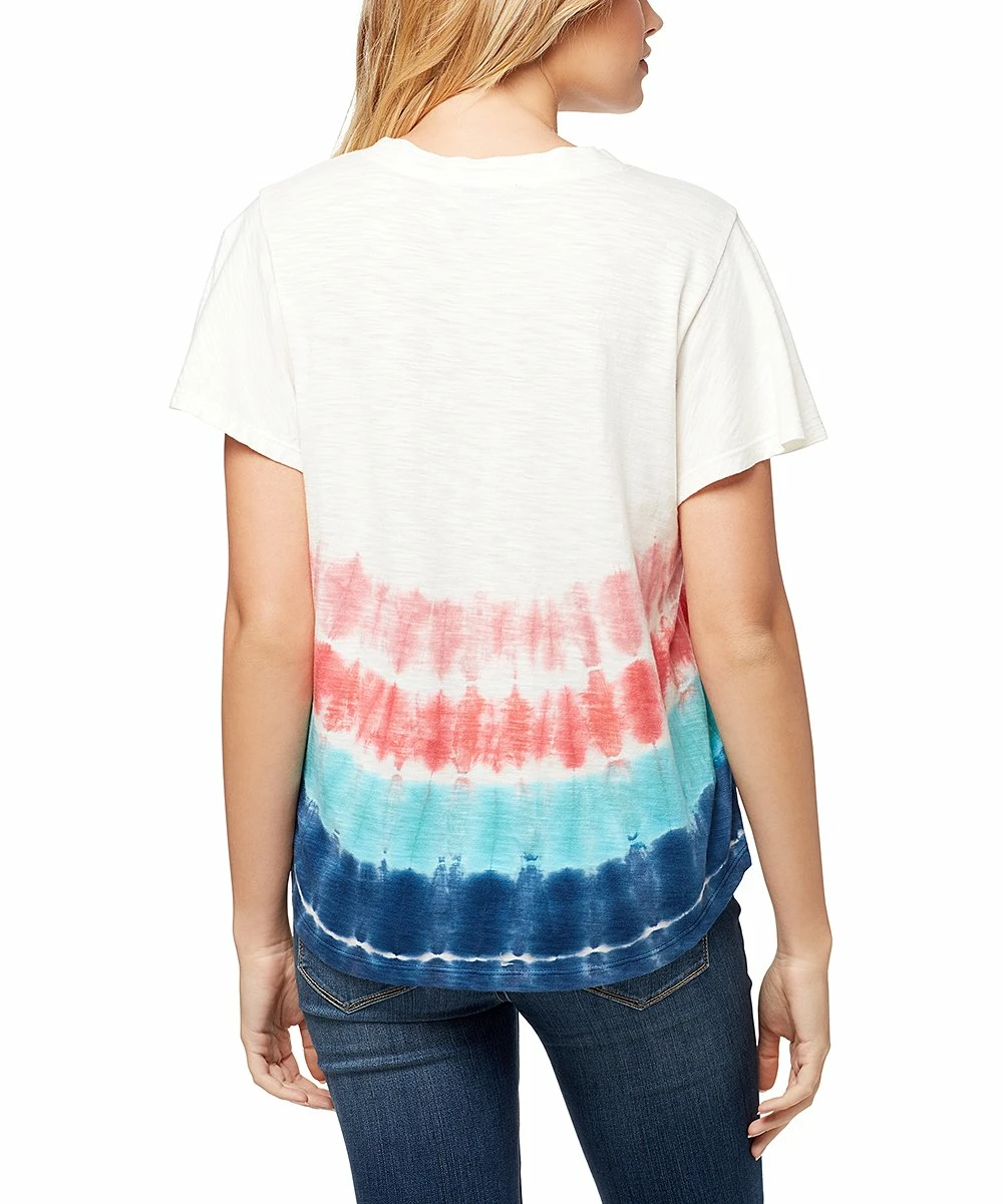 Reinvent your weekend look with this retro tie-dye tee flanked by fluttery sleeves. A breathable cotton blend delivers daylong comfort.