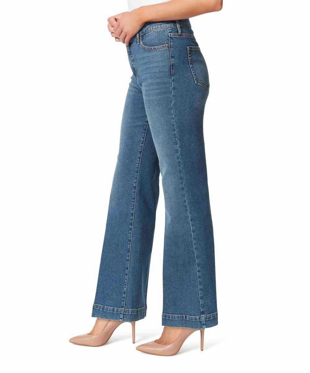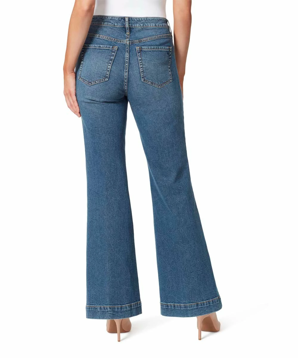 Comfy cotton jeans feature a classic washed, wide-leg design.