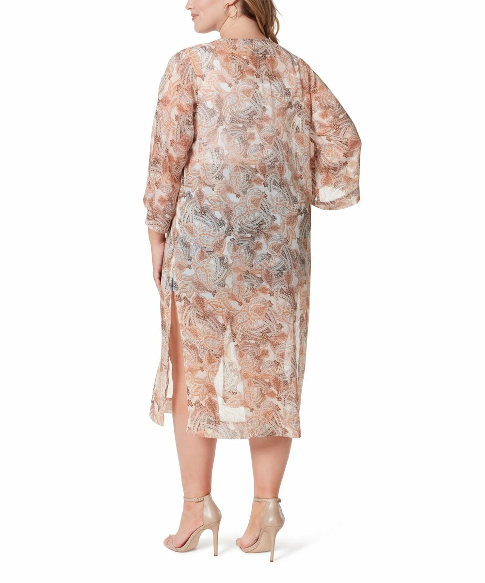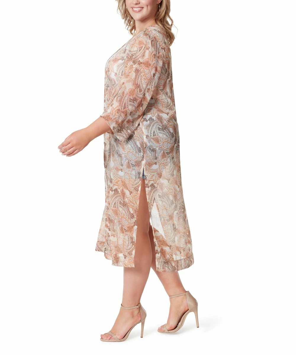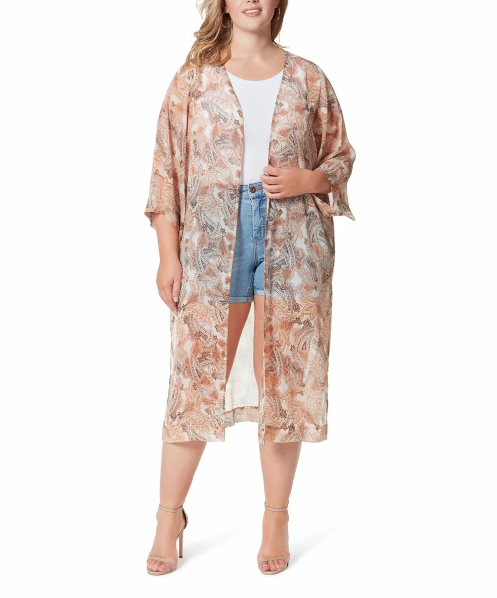 Duster kimono featuring elegant three-quarter sleeves and a soothing paisley print.