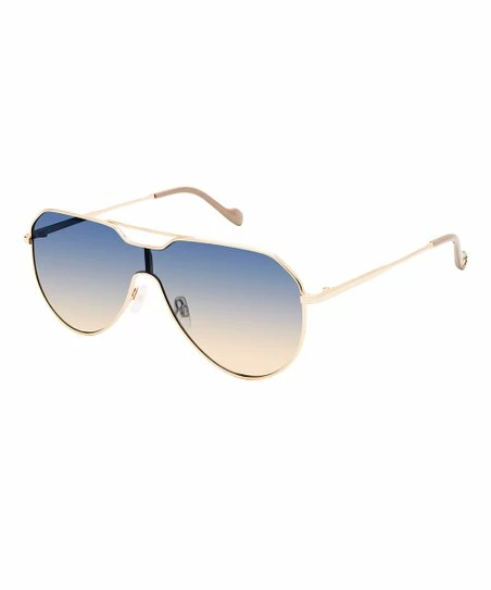 These modified aviator sunglasses feature a modern take on a timeless classic, plus adjustable nose pads for added comfort.
