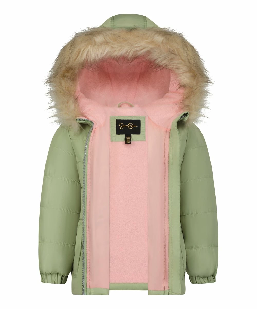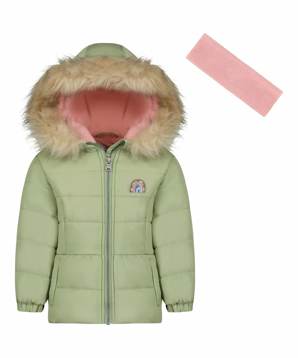This zip-up puffer coat is the ultimate companion for outdoor fun, with its hood trimmed in faux fur and its elastic cuffs. A soft headband keeps little ears warm.