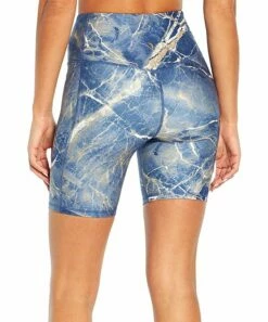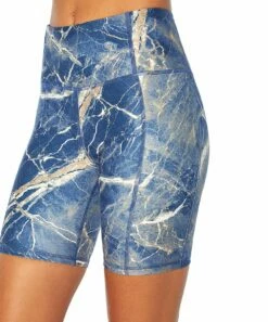 Stretchy bermuda bike shorts featuring a wide waistband with tummy control and hidden inner key pocket. Flattering side seam details and a marble print.