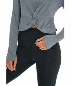 Refresh your casual and workout wardrobe with this long sleeve tee boasting a stylish twist front and hint of stretch for a comfy fit.