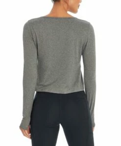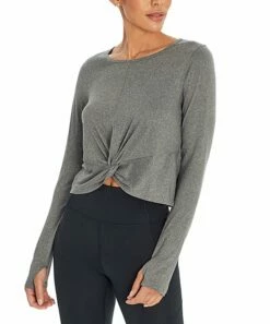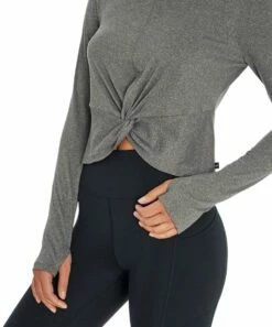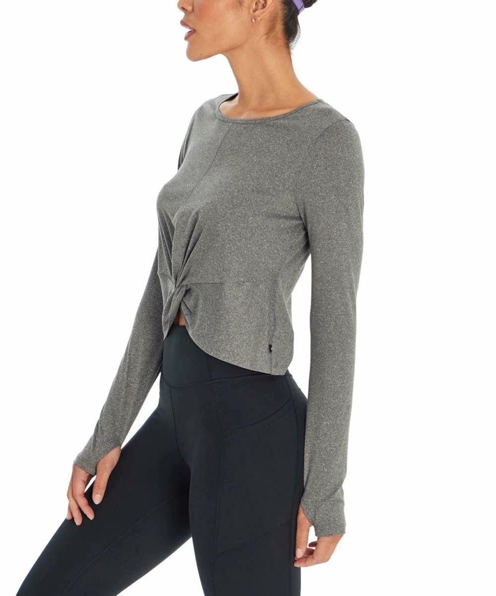 Refresh your casual and workout wardrobe with this long sleeve tee boasting a stylish twist front and hint of stretch for a comfy fit.