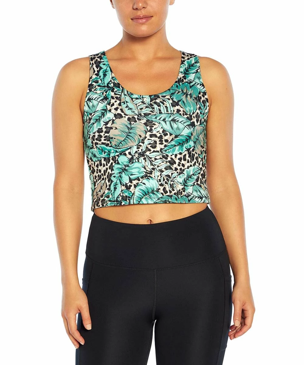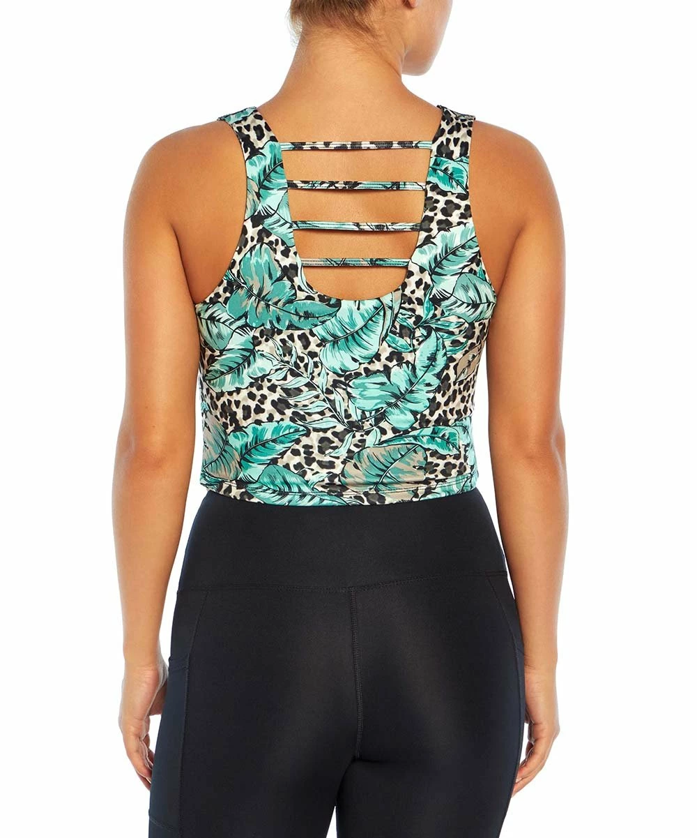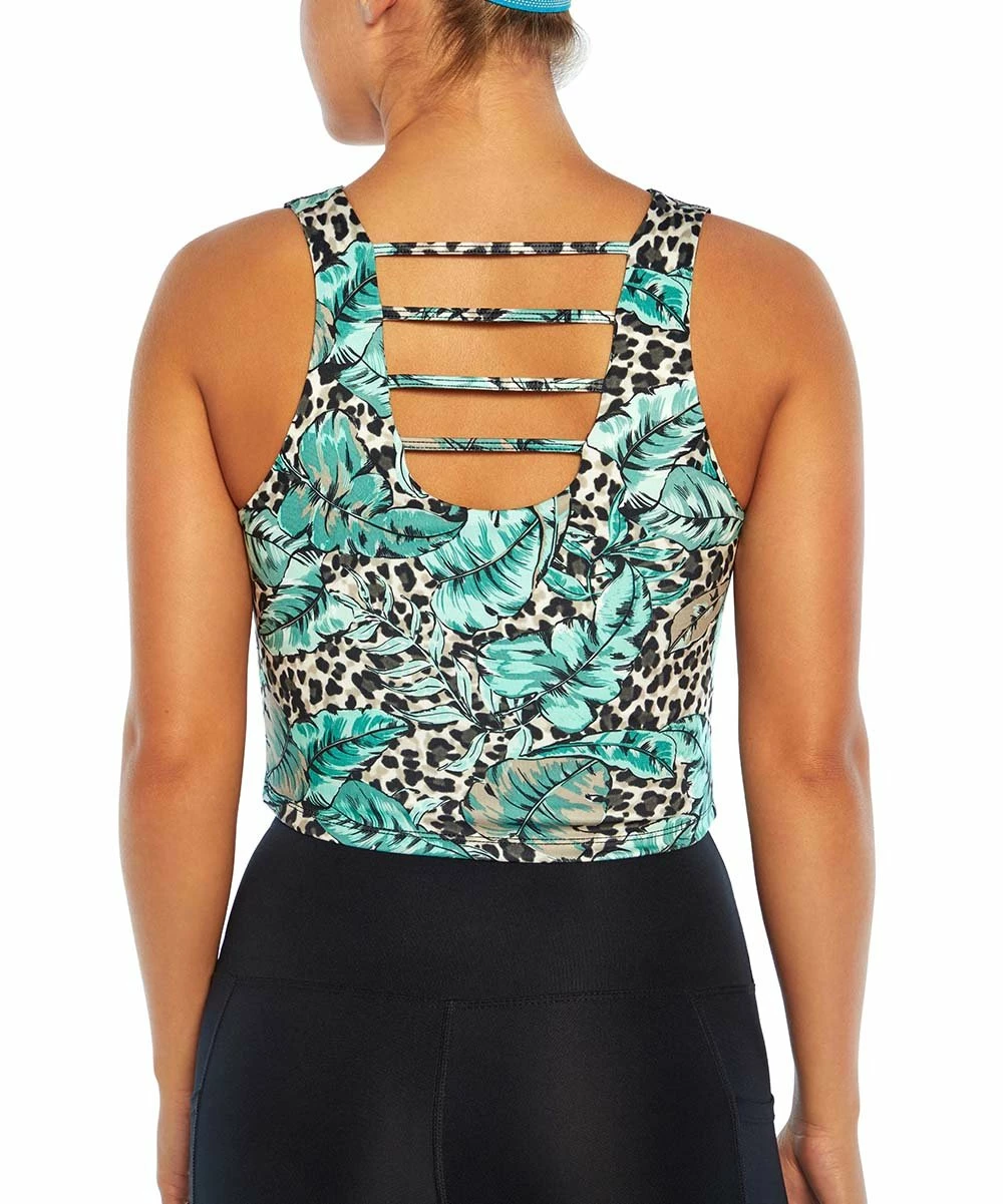 Conquer your workout in this tank crafted from stretchy fiber that boasts thin shoulder straps to help keep you cool on sunny days.
