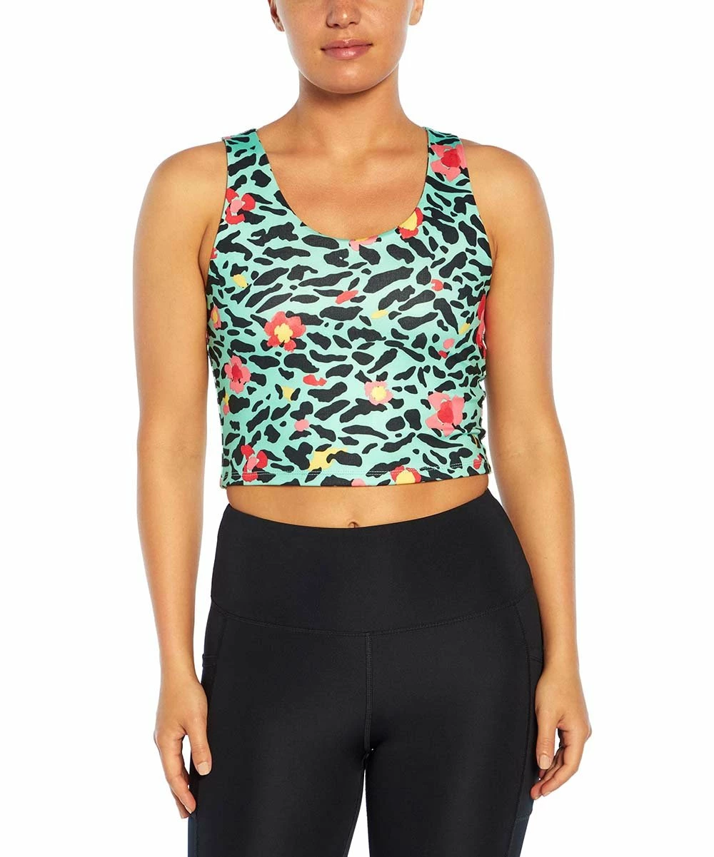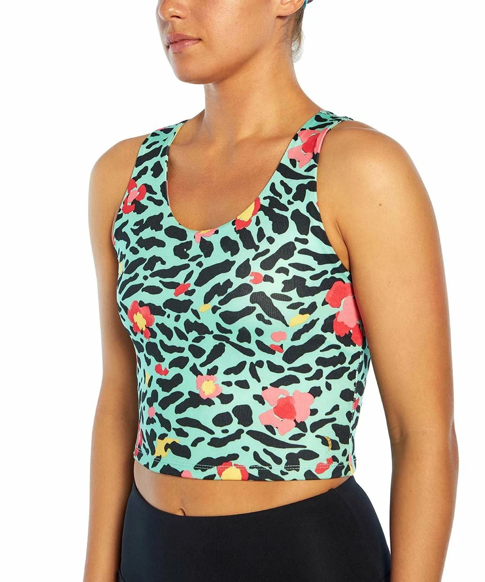 Conquer your workout in this tank crafted from stretchy fiber that boasts thin shoulder straps to help keep you cool on sunny days.