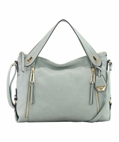 Zip accents and grommet details elevate this satchel crafted with interior organizational pockets and top handles.