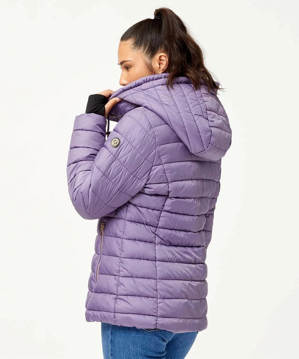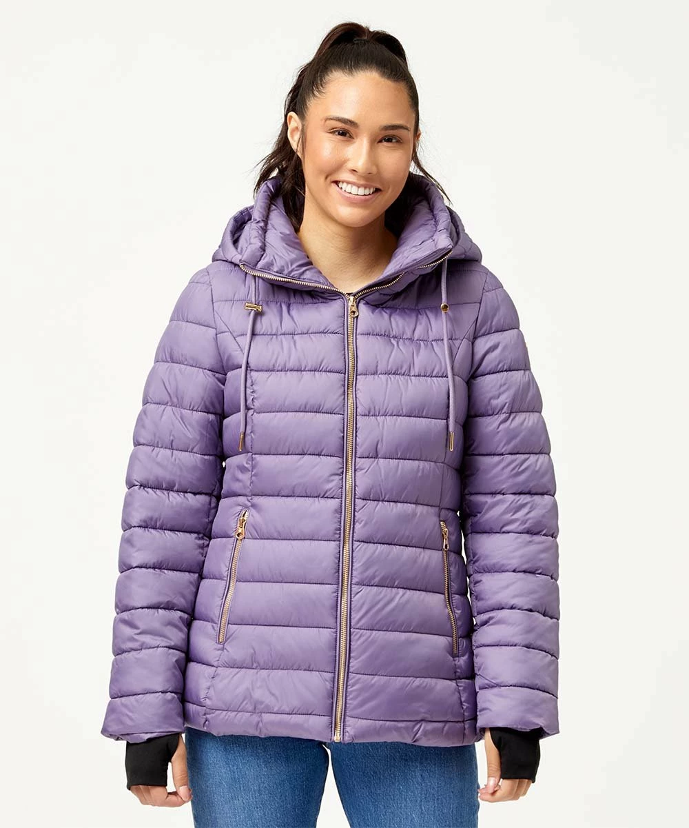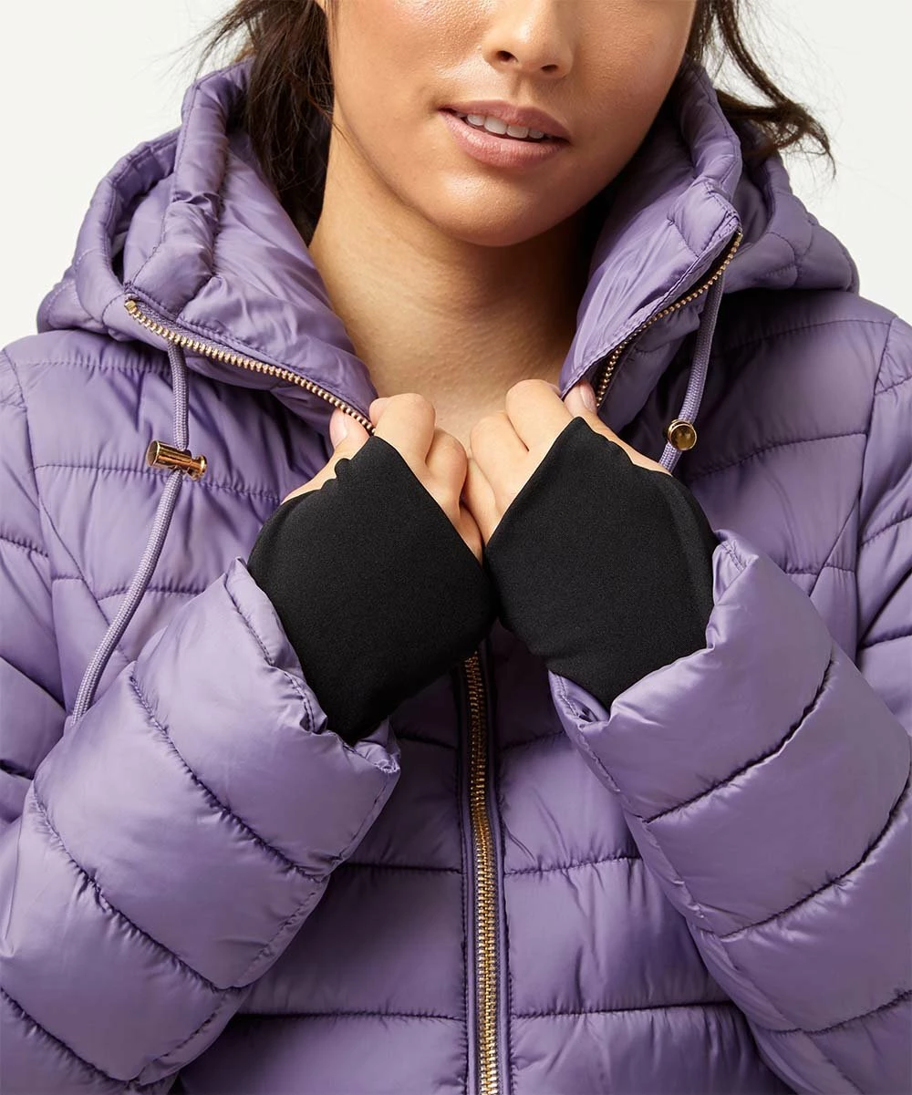 Ensure that you stay warm and dry when you slip on this water-resistant puffer coat featuring storm cuffs and an attached hood. True fit allows you to comfortably layer over a sweater or sweatshirt.