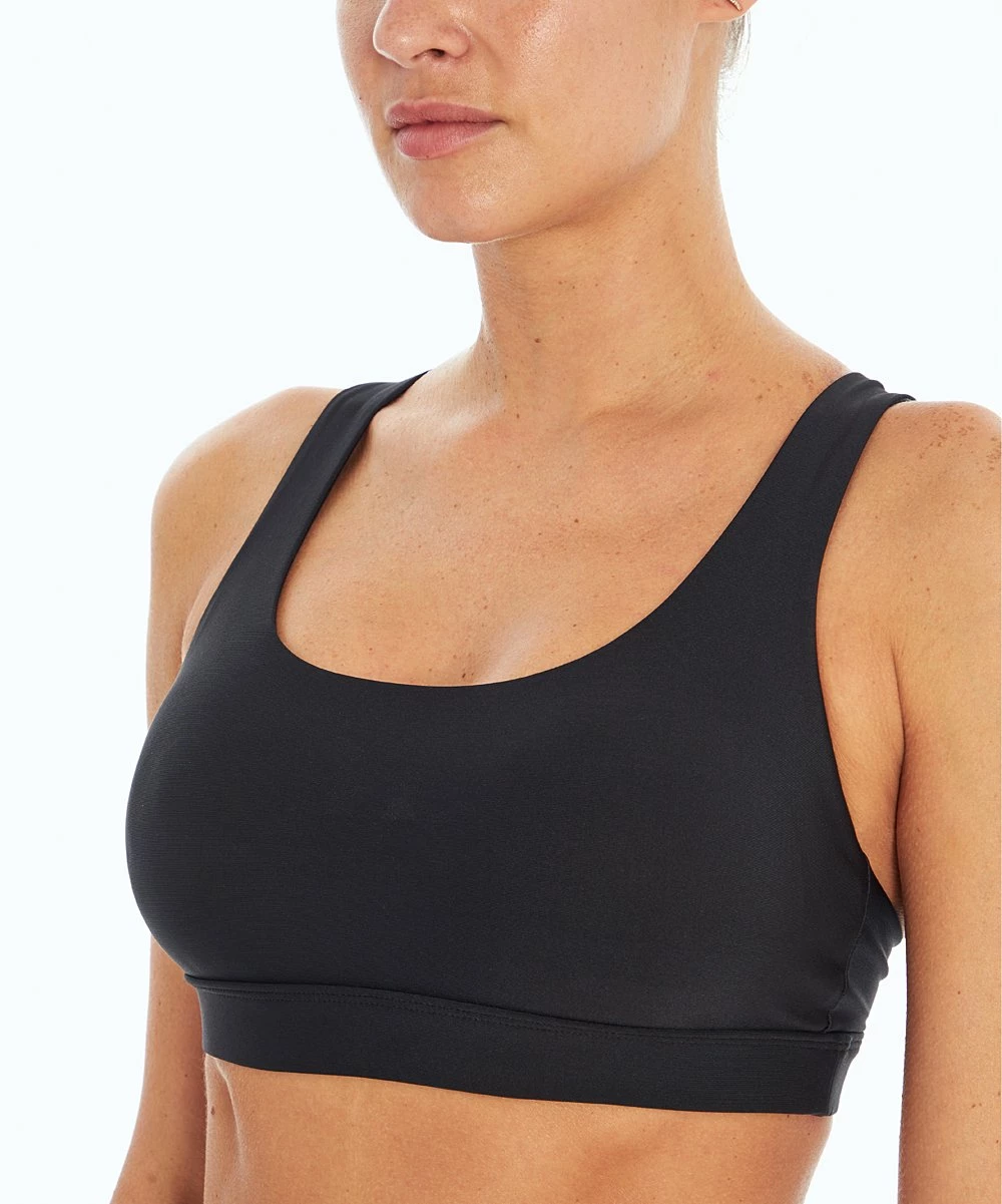 Enjoy supportive comfort throughout your workouts with this sports bra showcasing an ultra-strappy crisscross back and stretch-enhanced material.