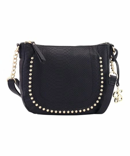 This stud-accented crossbody bag is crafted with interior organizational pockets and an adjustable strap.