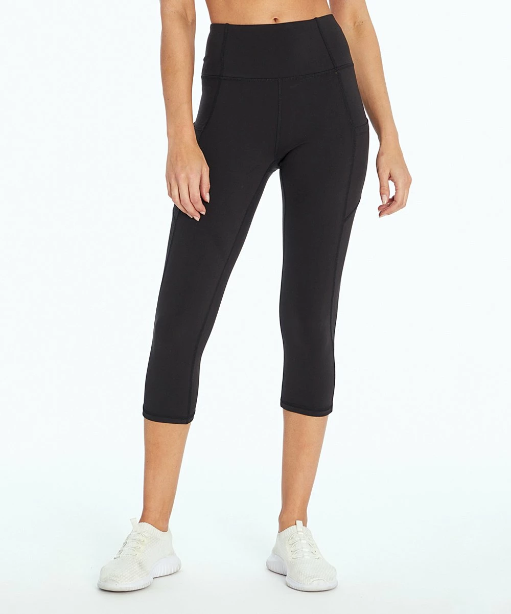Hit your next workout hard in sporty style when you slip on these capri leggings boasting a tummy control panel at the waist for a flattering fit. Pockets make space for your phone and small essentials while you perfect your form.