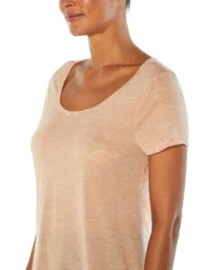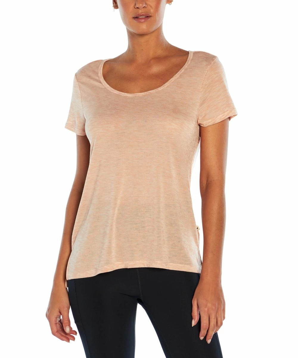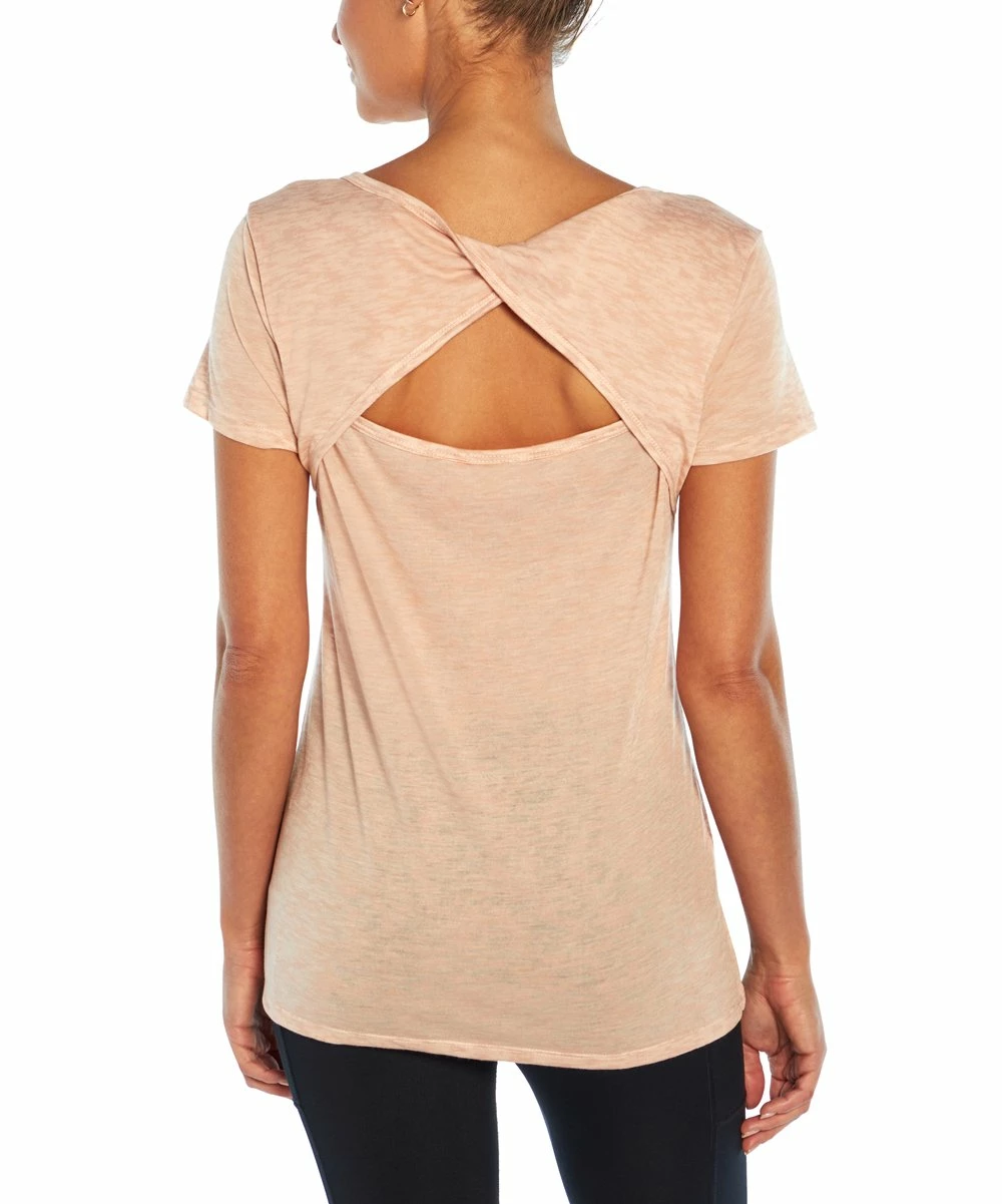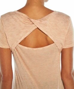 Update your athleisure looks with this scoop neck tee featuring a twisted cutout back and soft, breathable fabric for comfortable weekend wear.