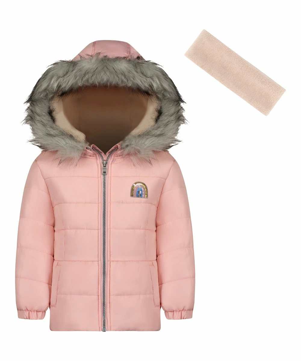 This zip-up puffer coat is the ultimate companion for outdoor fun, with its hood trimmed in faux fur and its elastic cuffs. A soft headband keeps little ears warm.