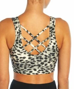 This longline bra offers a comfortable and supportive fit while looking stylish with its unique print and strappy back design.