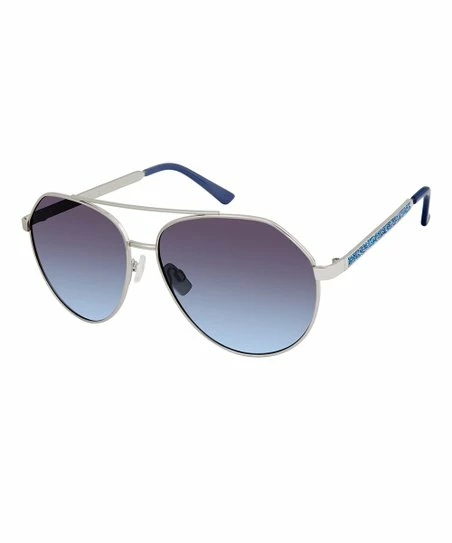 These modified aviator sunglasses feature a modern take on a timeless classic, plus adjustable nose pads for added comfort.