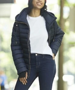 Ensure that you stay warm and dry when you slip on this water-resistant puffer coat featuring storm cuffs and an attached hood. True fit allows you to comfortably layer over a sweater or sweatshirt.
