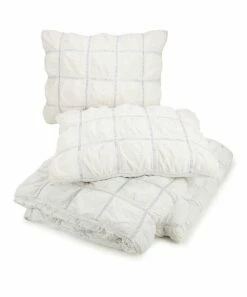 - Includes one white comforter, two white shams, and one blue and white stripe pillow (twin sizes included one sham)