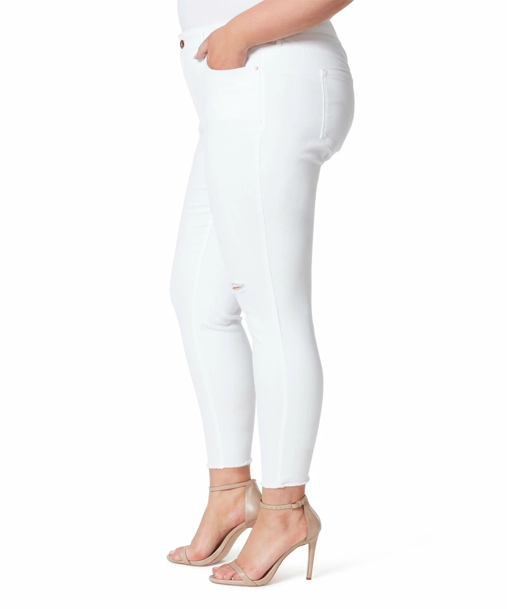 Skinny jeans featuring distressed details and a supportive high-rise construction.